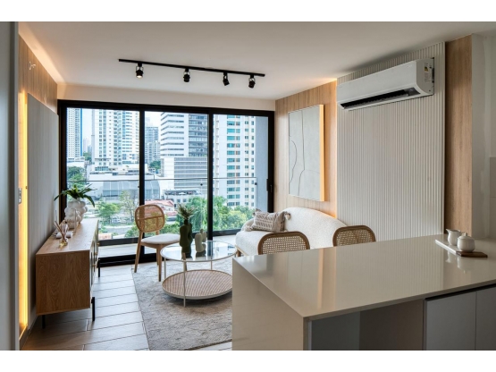 Con una superficie privada de 48 m² optimizada con acabados de primera, la propiedad ofrece un ambiente acogedor y moderno, Una amplia recamara con baño privado y clósets empotrados de diseño, Concepto abierto que integra una cocina tipo americano totalmente equipada, barra de desayunador y despensa funcional.
